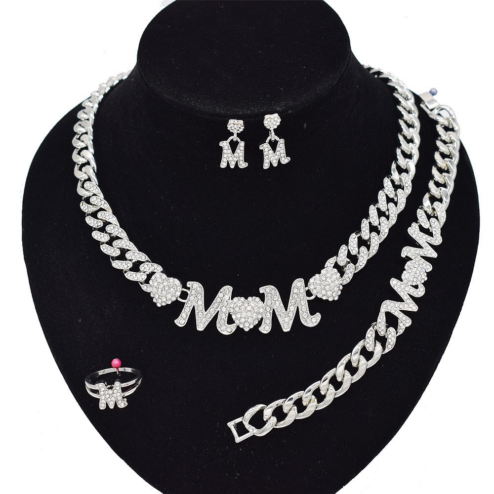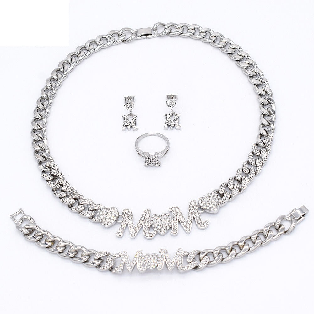 HUGS &KISSES Cuban mom set silver color gold Plated #58