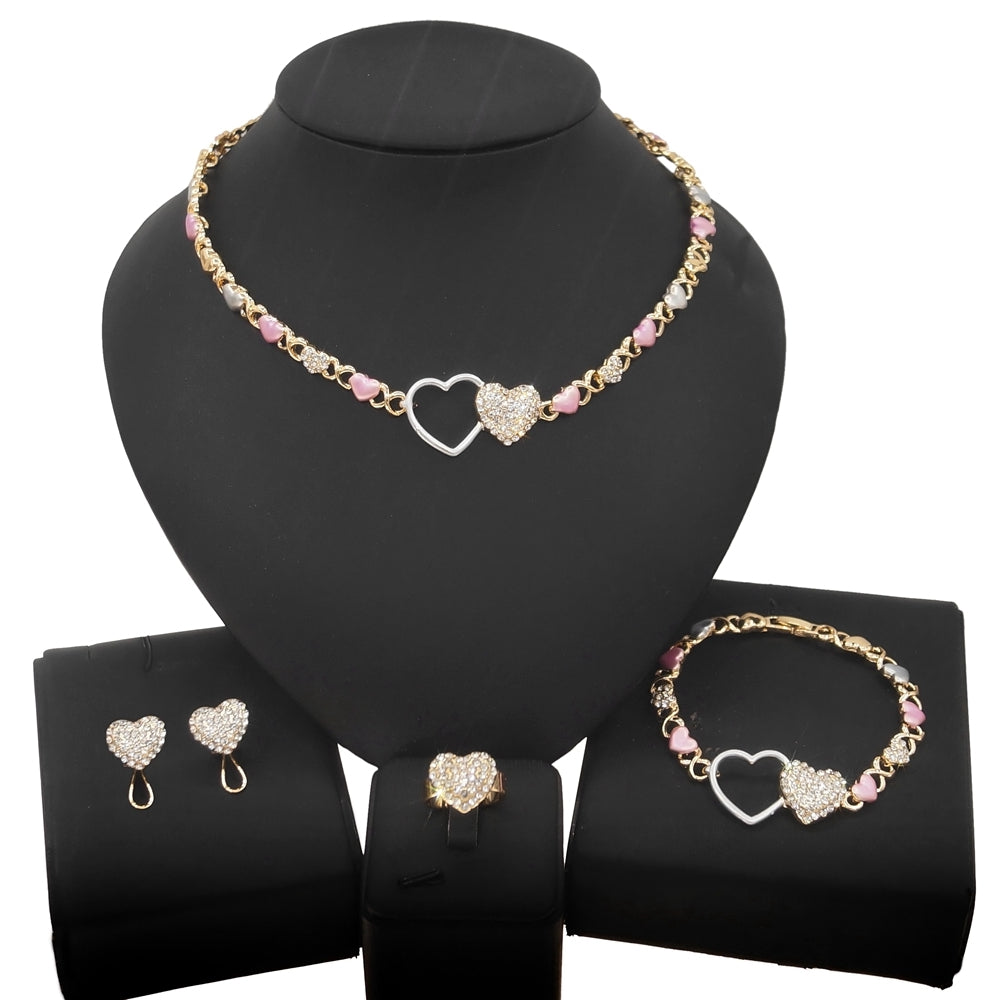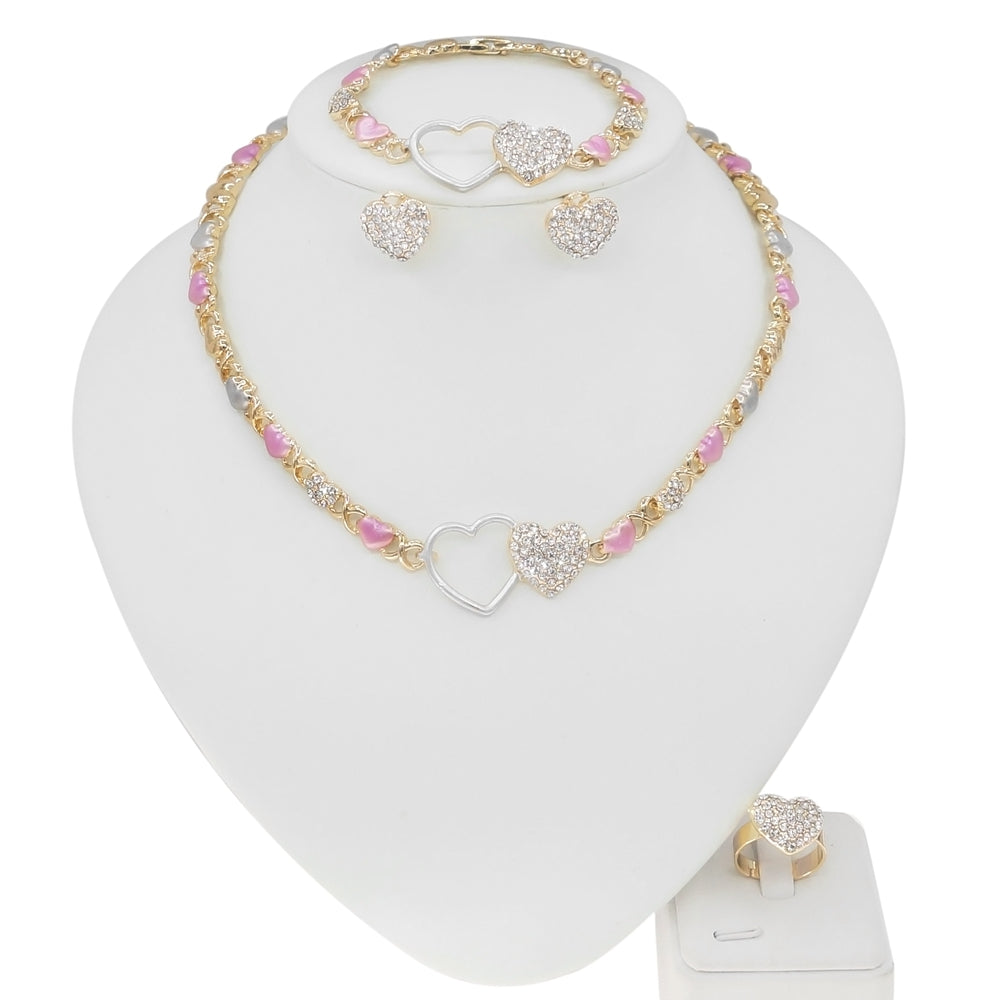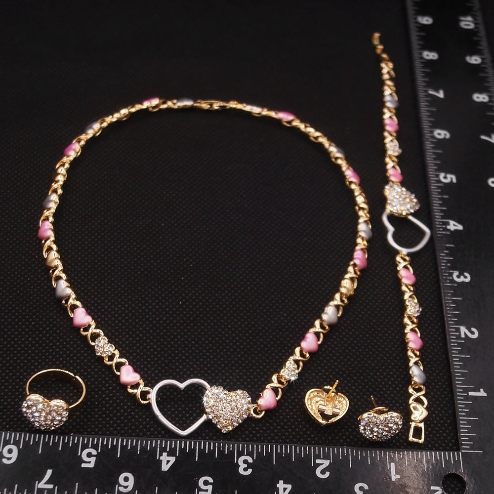 HUGS &KISSES double hearts set tri colors gold Plated #19