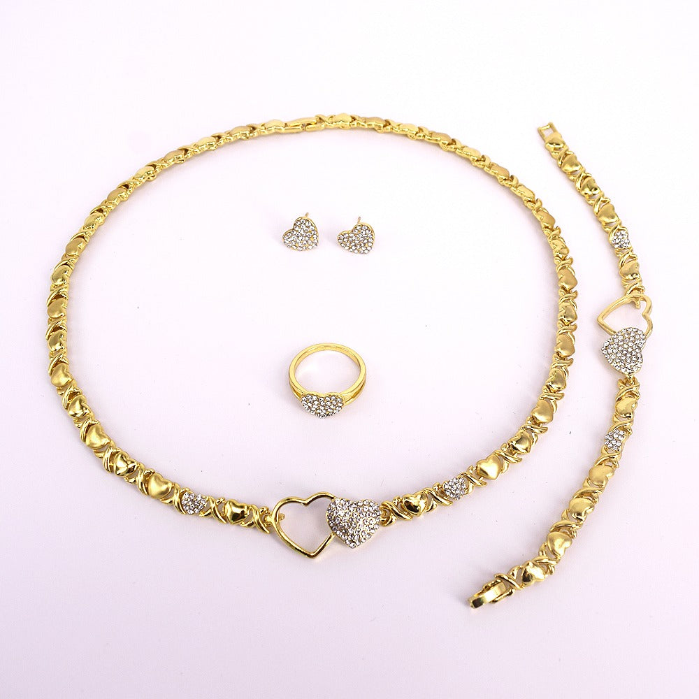 HUGS &KISSES double hearts xo set gold Plated #1