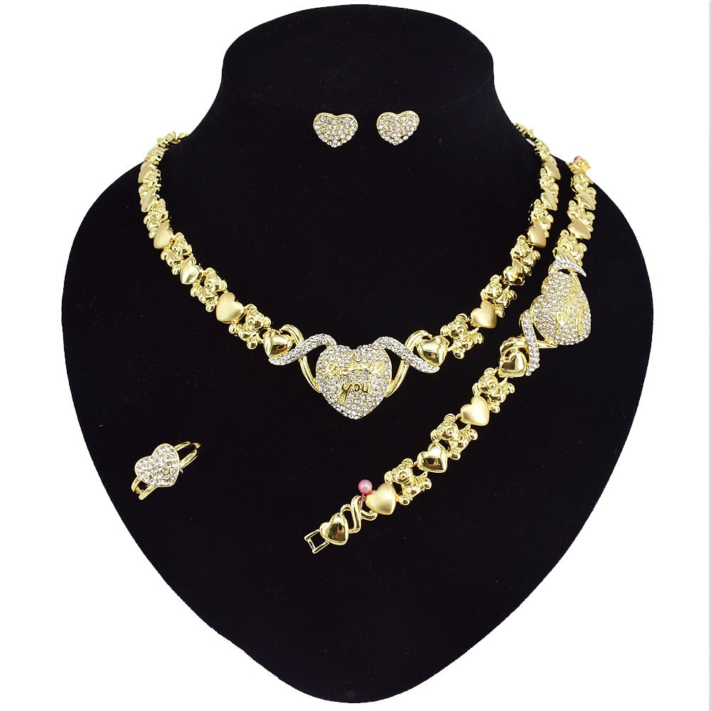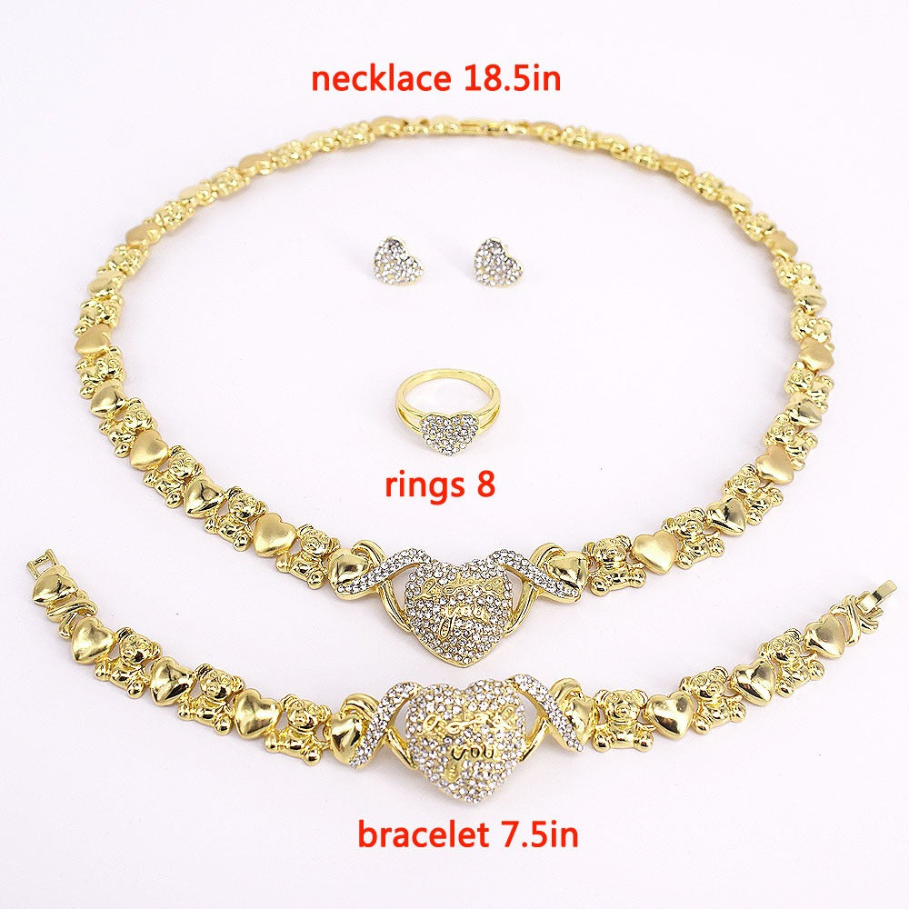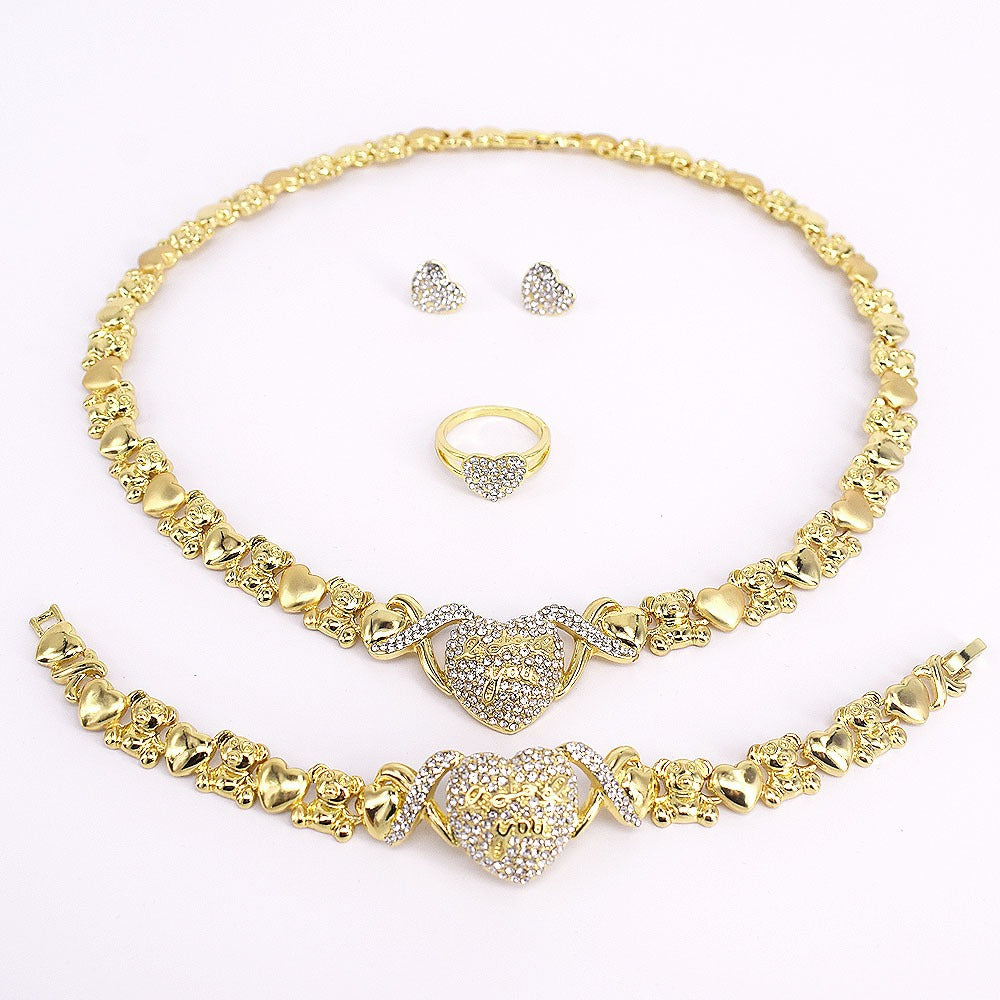 HUGS &KISSES icedcut heart teddy bears set gold Plated #13