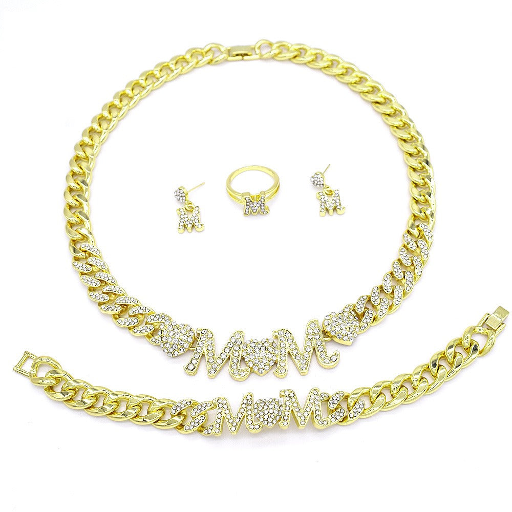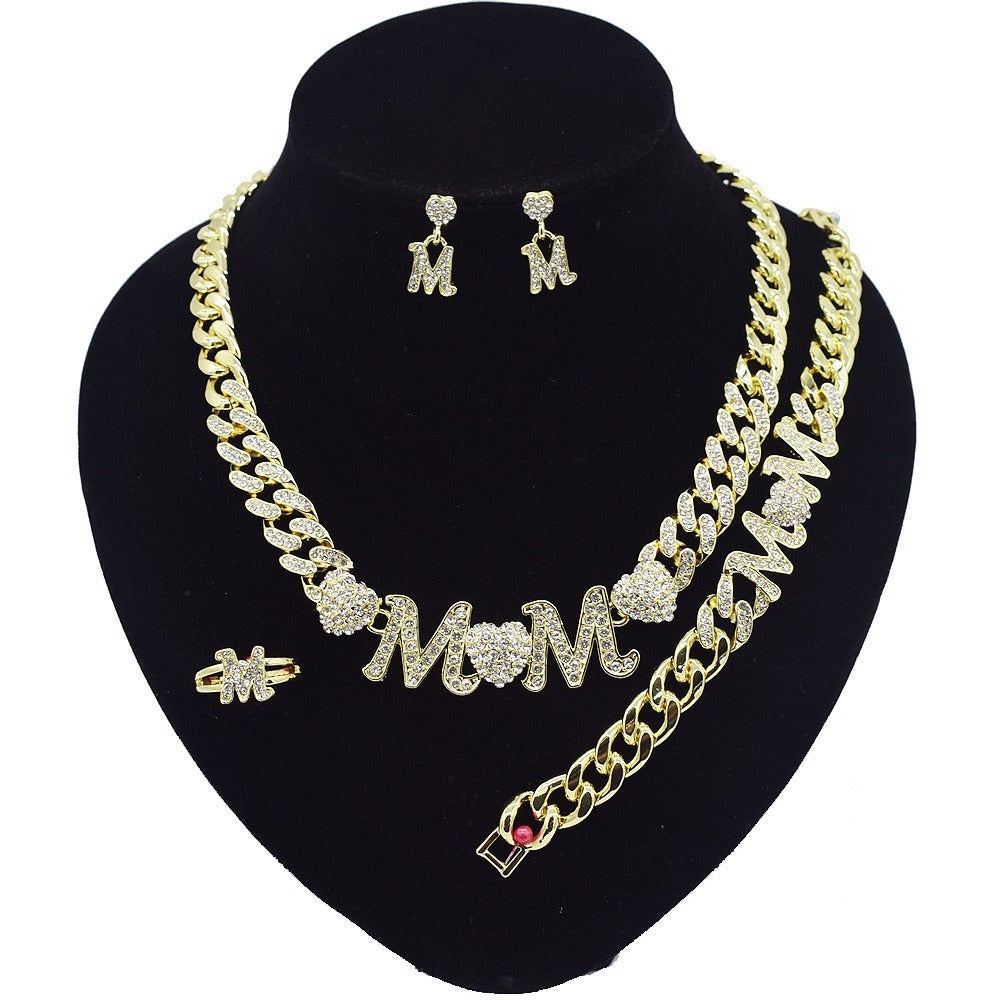 HUGS &KISSES mom Cuban link set gold Plated #95
