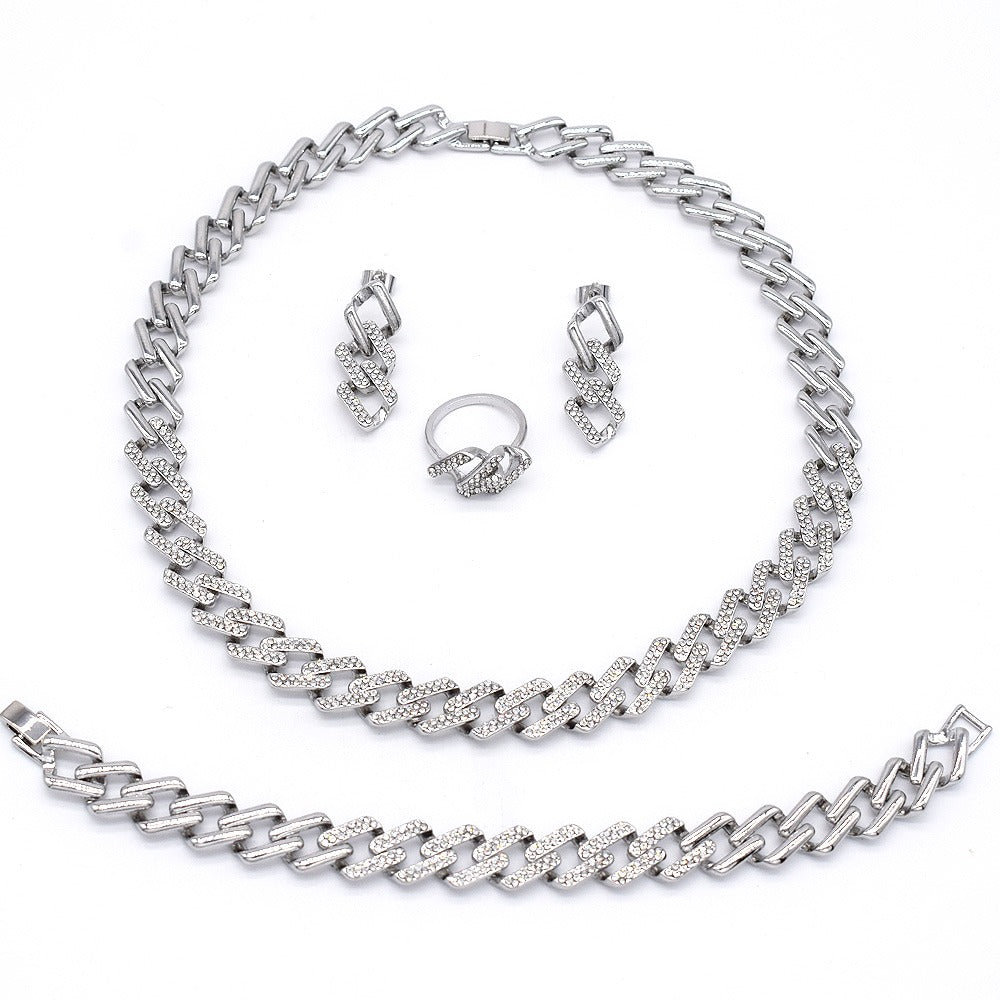 HUGS &KISSES set Cuban set silver color gold Plated #151