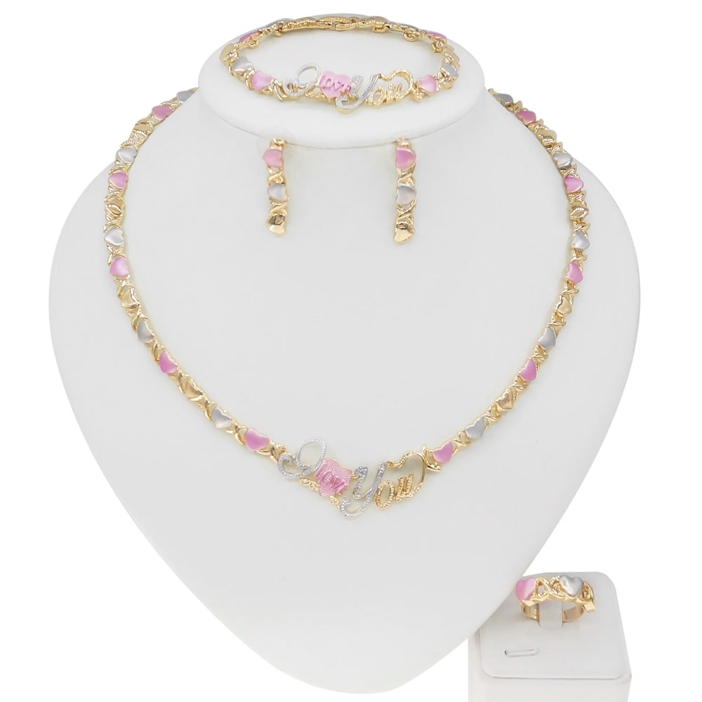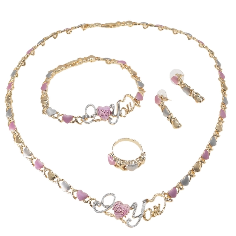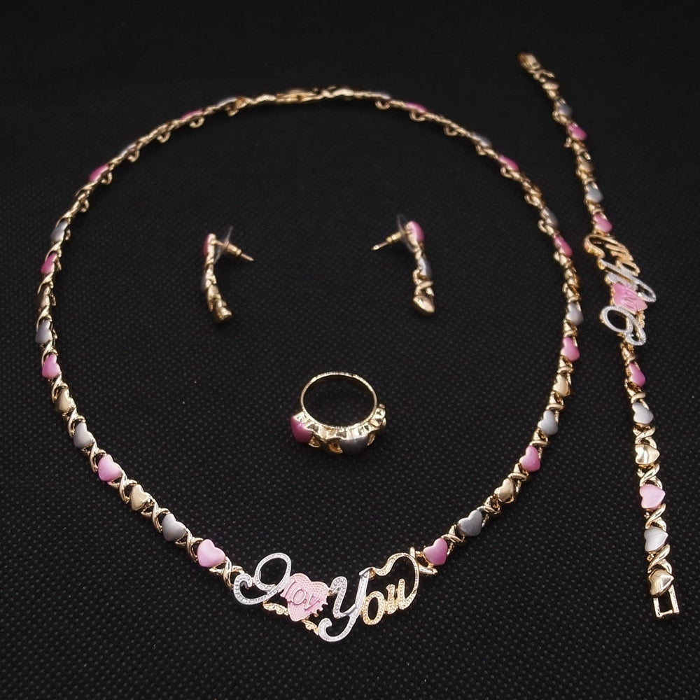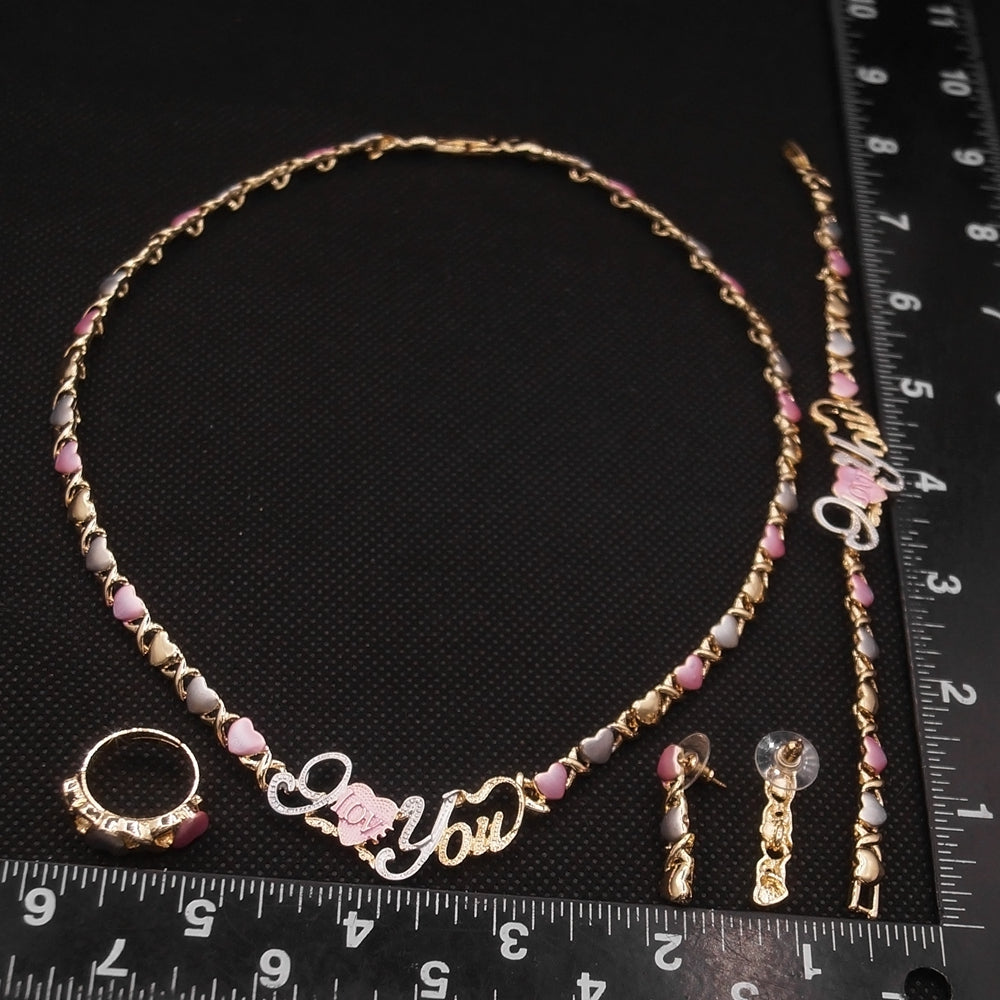 HUGS &KISSES tri colors I love you set gold Plated #117