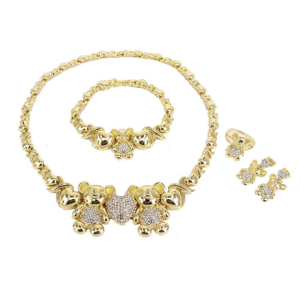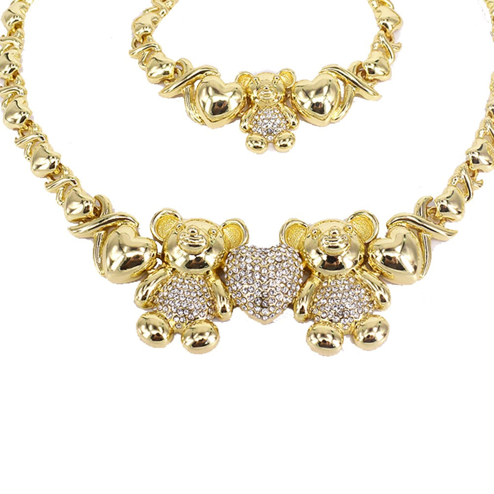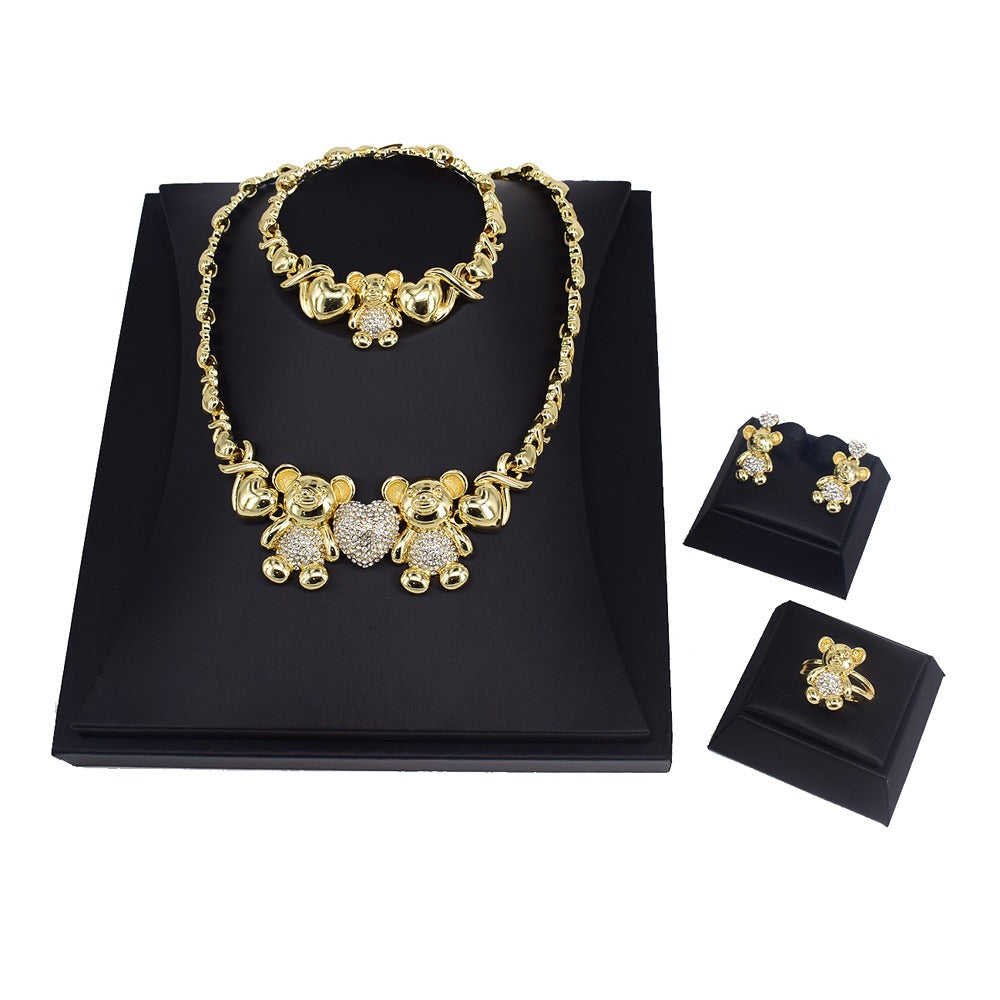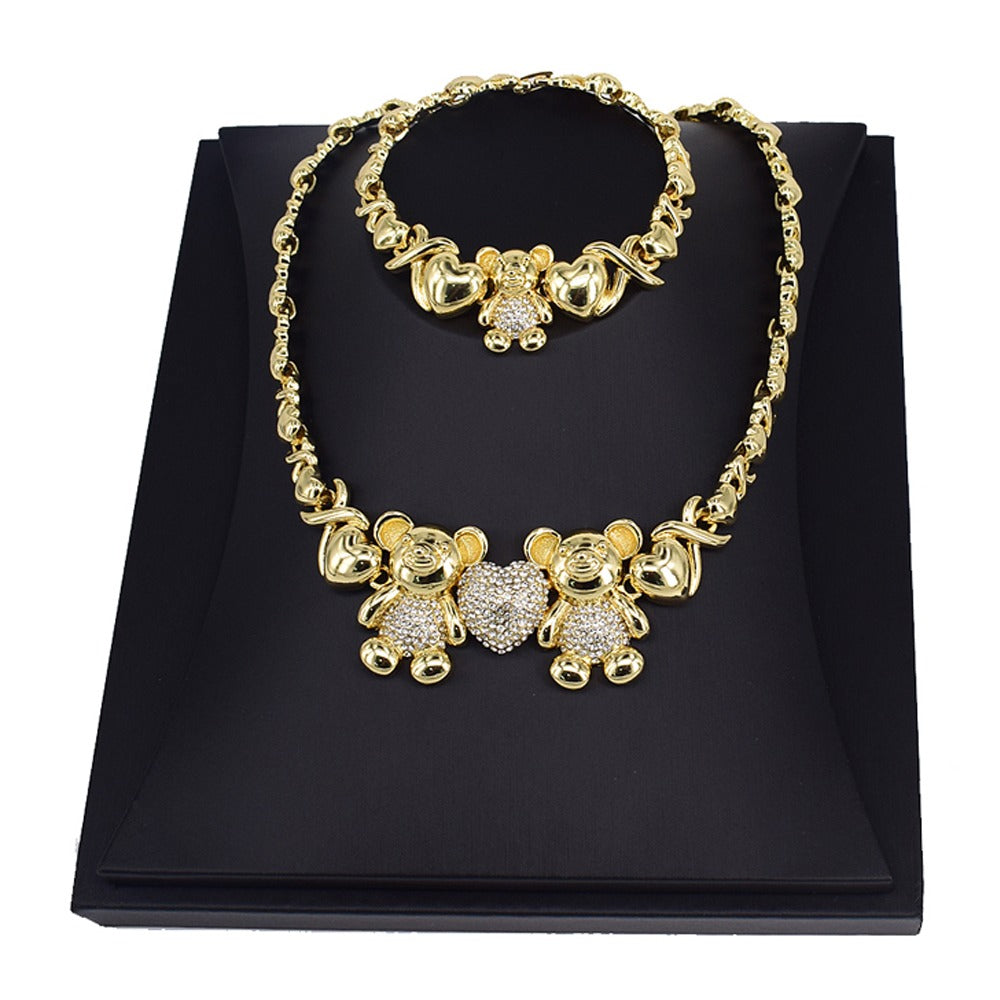HUGS &KISSES xo double teddy bear set gold Plated #50