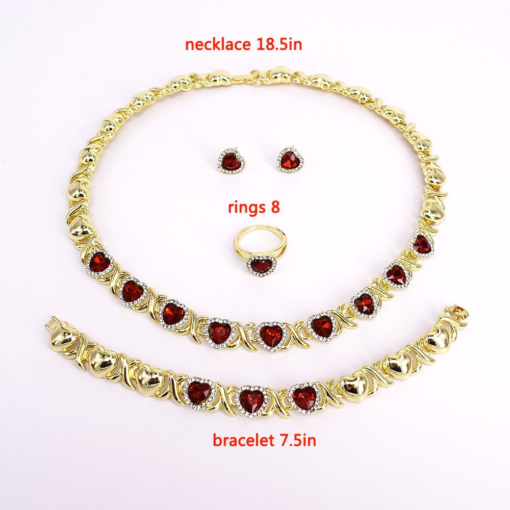 HUGS &KISSES xo set valentine's day set red roby gold plated #77