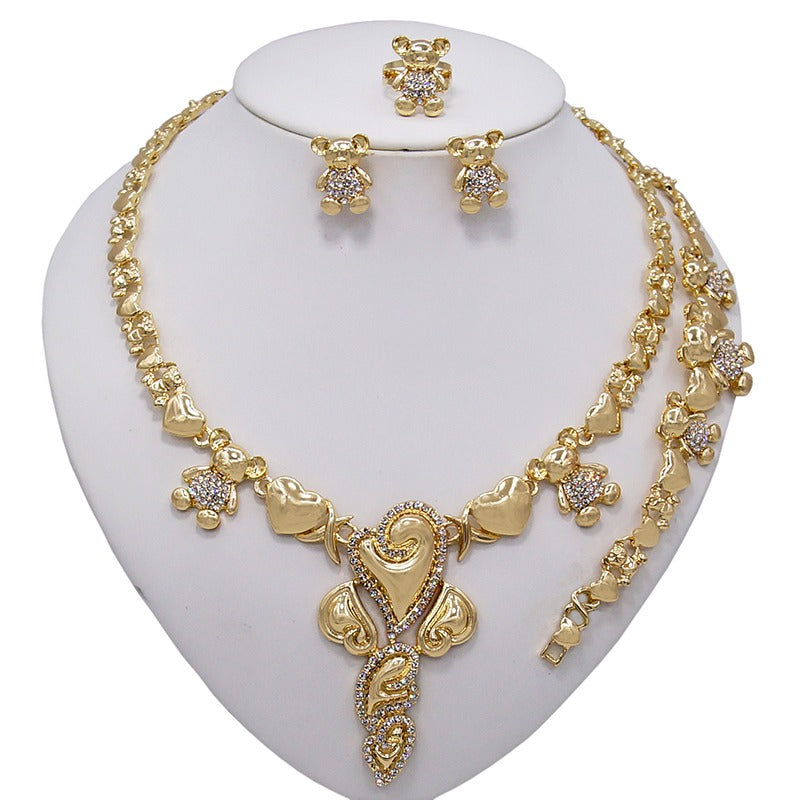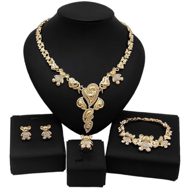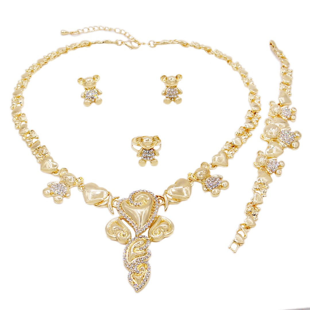 HUGS &KISSES xo teddy bear heart set gold Plated #83