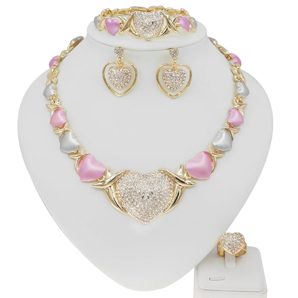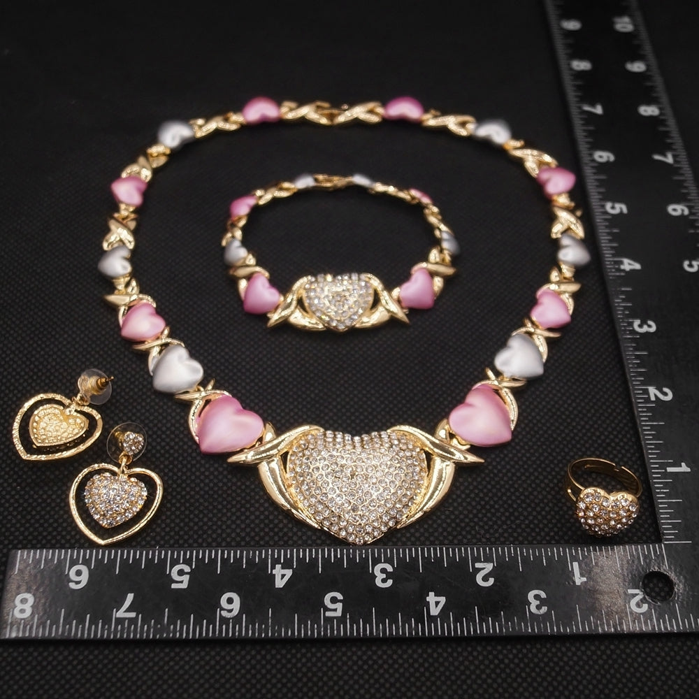 HUGS &KISSES xo tri colors big heart gold Plated #114