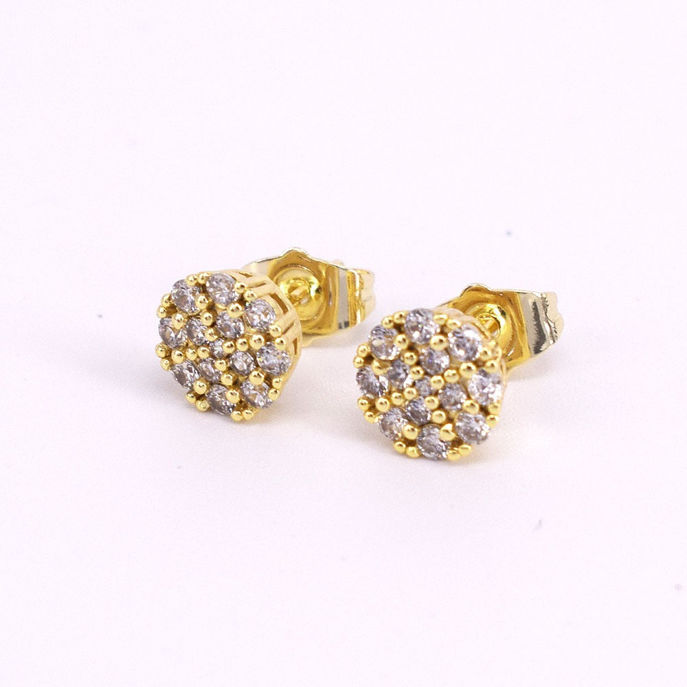Icedout hip hop Gold Filled Push Back earrings Icedcut micro pave flowers design #8