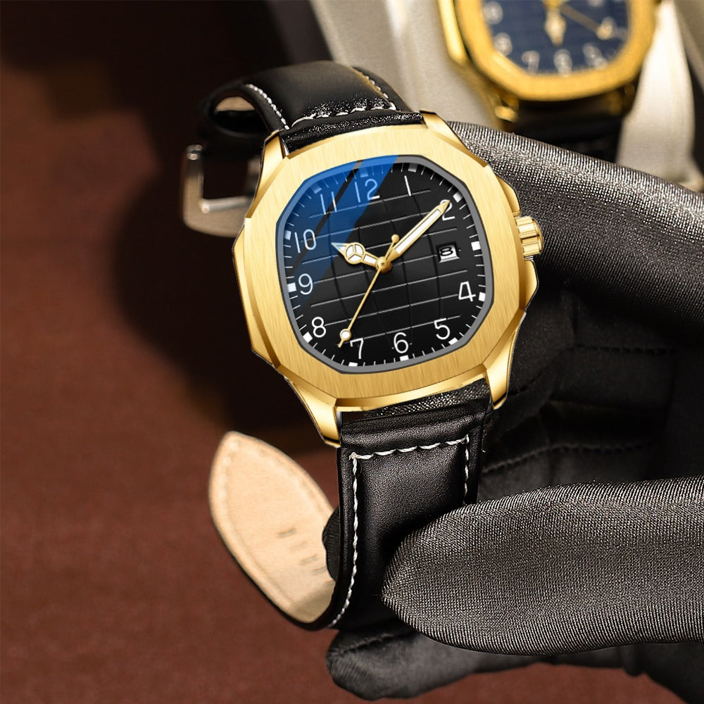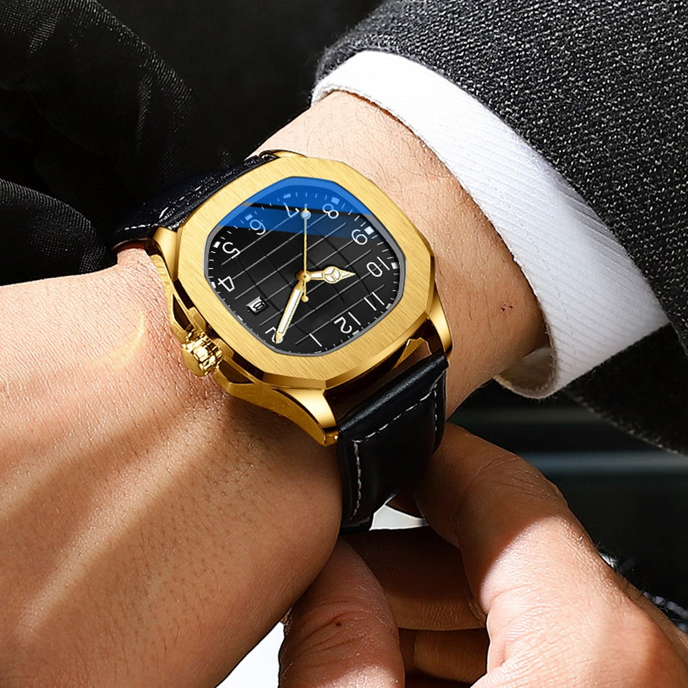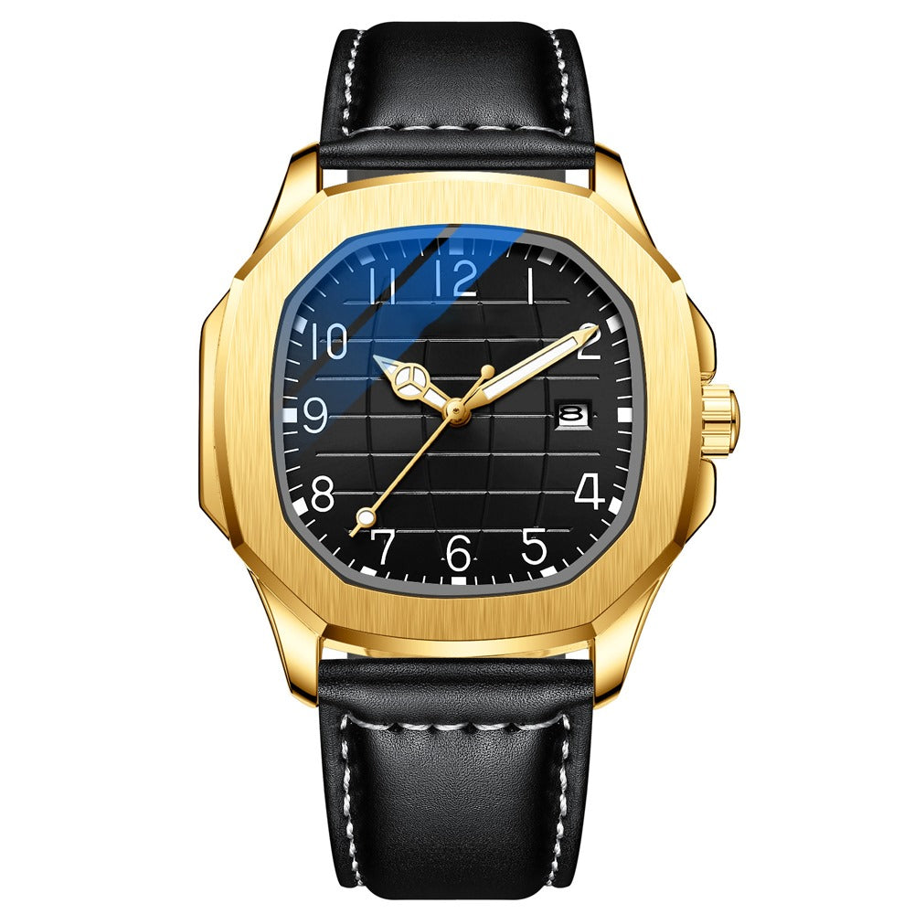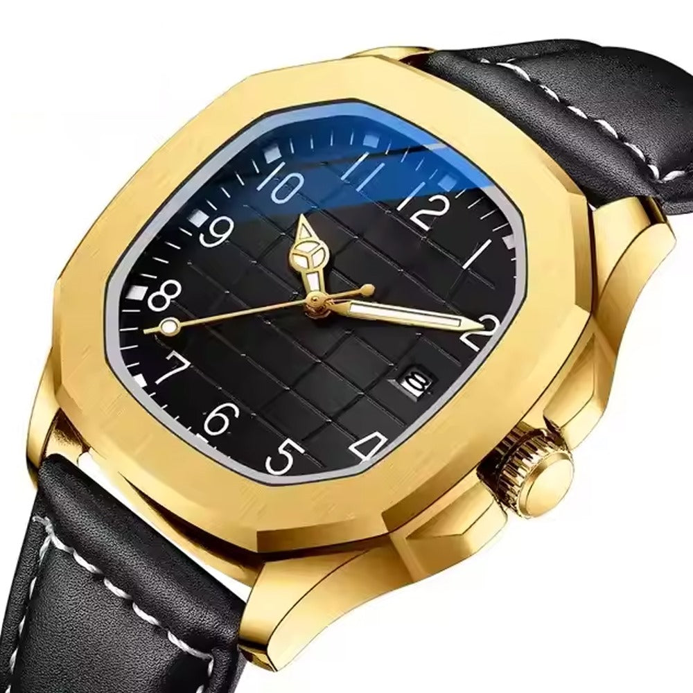 Luxury Gold color Presidential watch black face stainless steel Black Leather #10