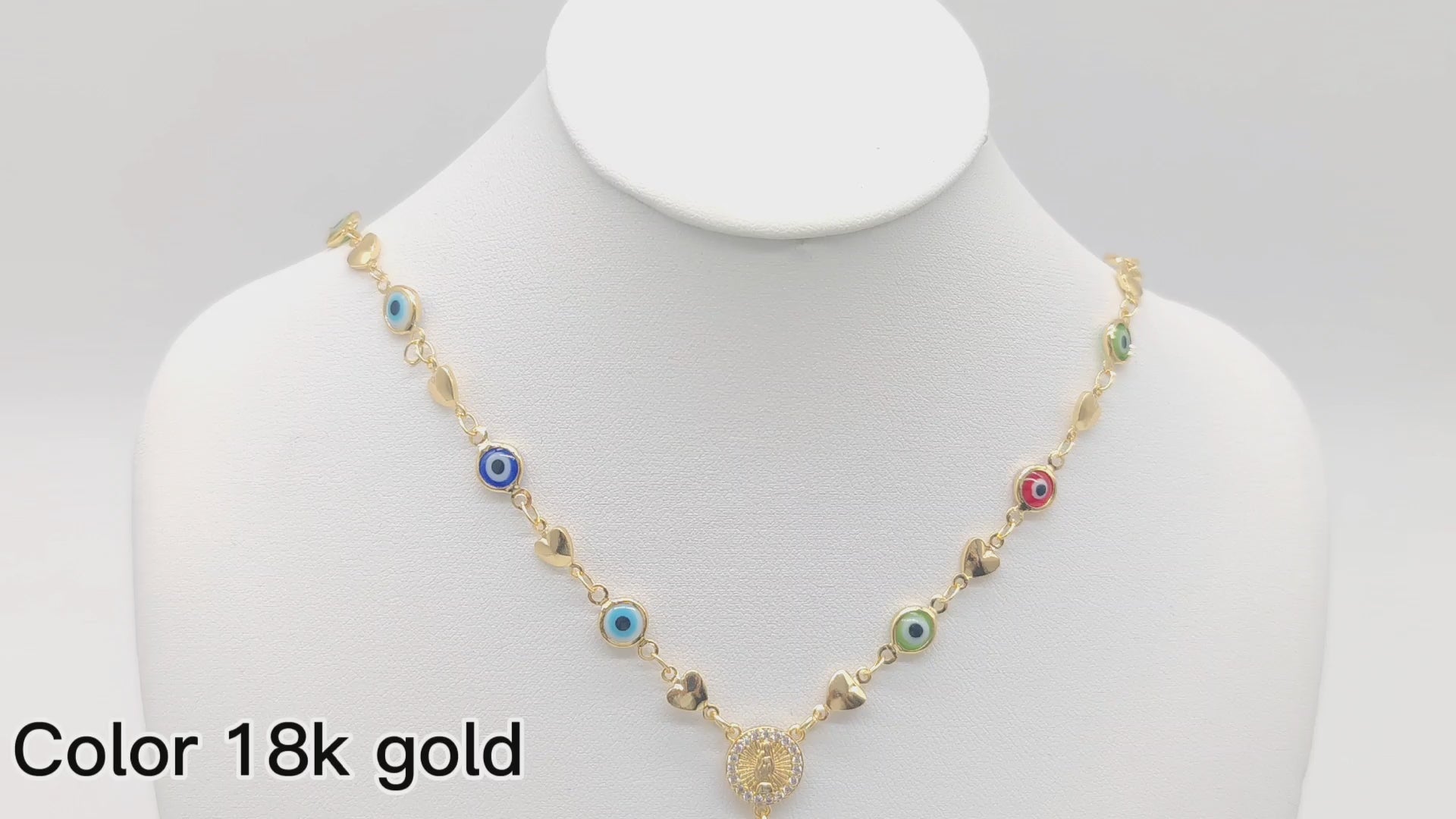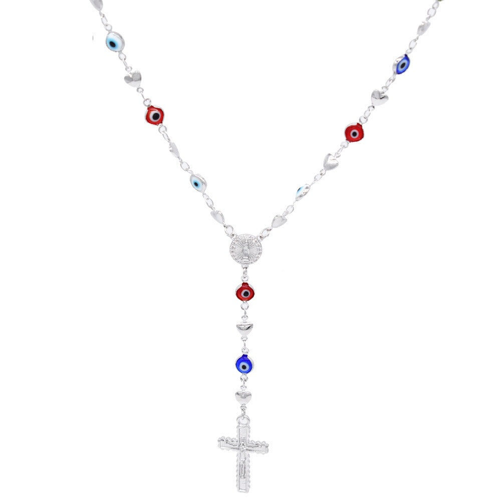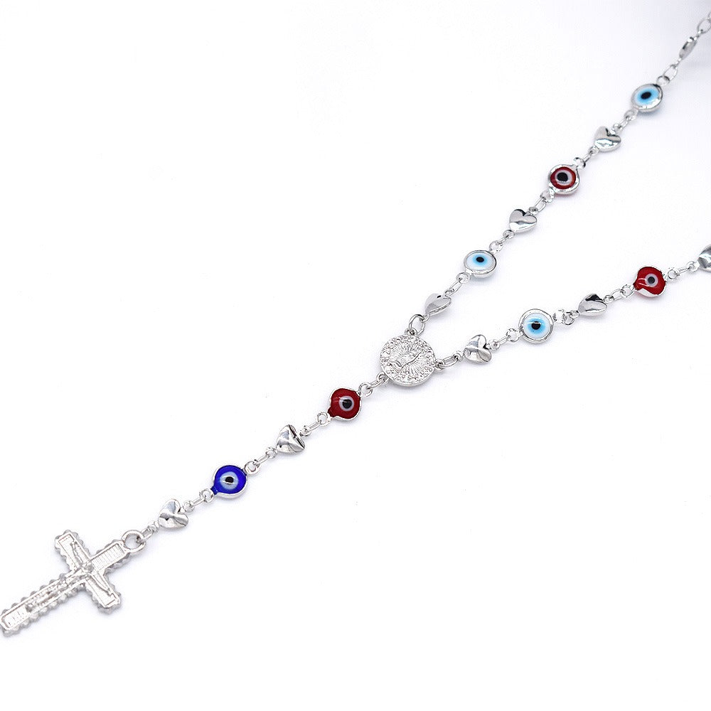 Silver Layered real gold filled religious EVIL eyes rosary necklace #11