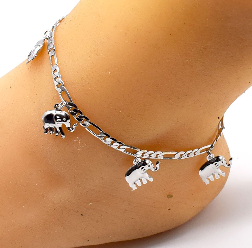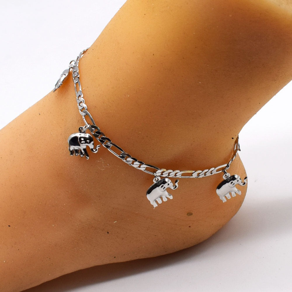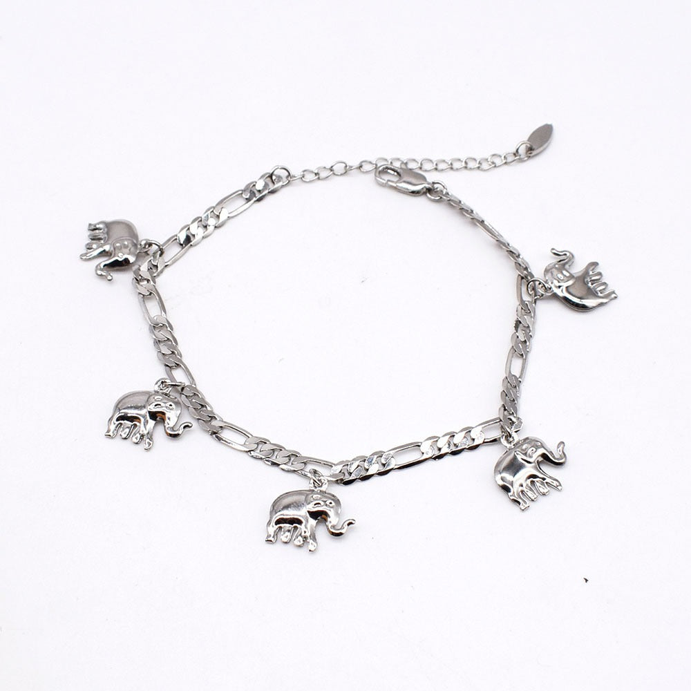 Silver Layered Real Gold Plated elephant anklet bracelet 10 inches #46