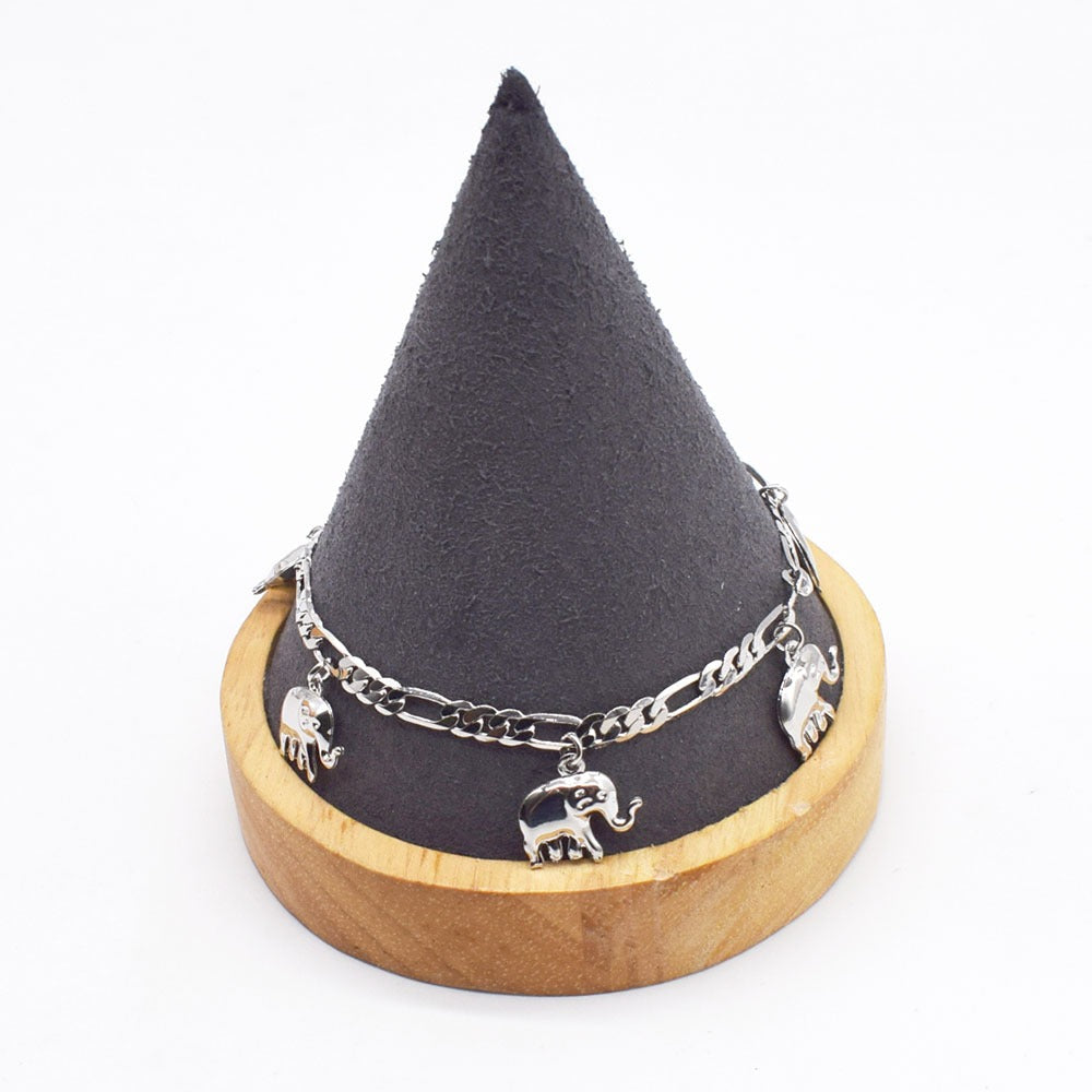 This Silver Layered Real Gold Plated Elephant Anklet Bracelet is a stylish and elegant accessory that features a layered design with a gold filled elephant charm. The anklet is made of brass and has a length of 10 inches, making it perfect for wearing alone or stacking with other bracelets. Its silver color and excellent cut grade give it a sophisticated and high-quality look, while its unique design adds a playful touch to any outfit. this anklet is a must-have for those who appreciate fashionable jewelry with a touch of charm.