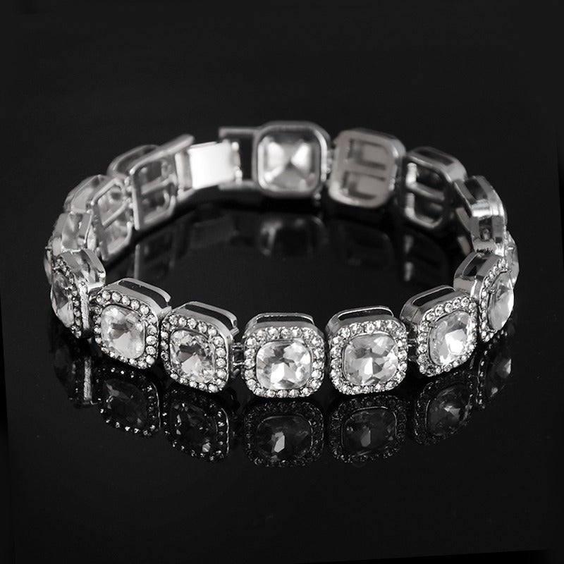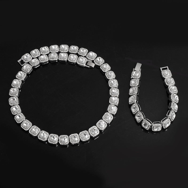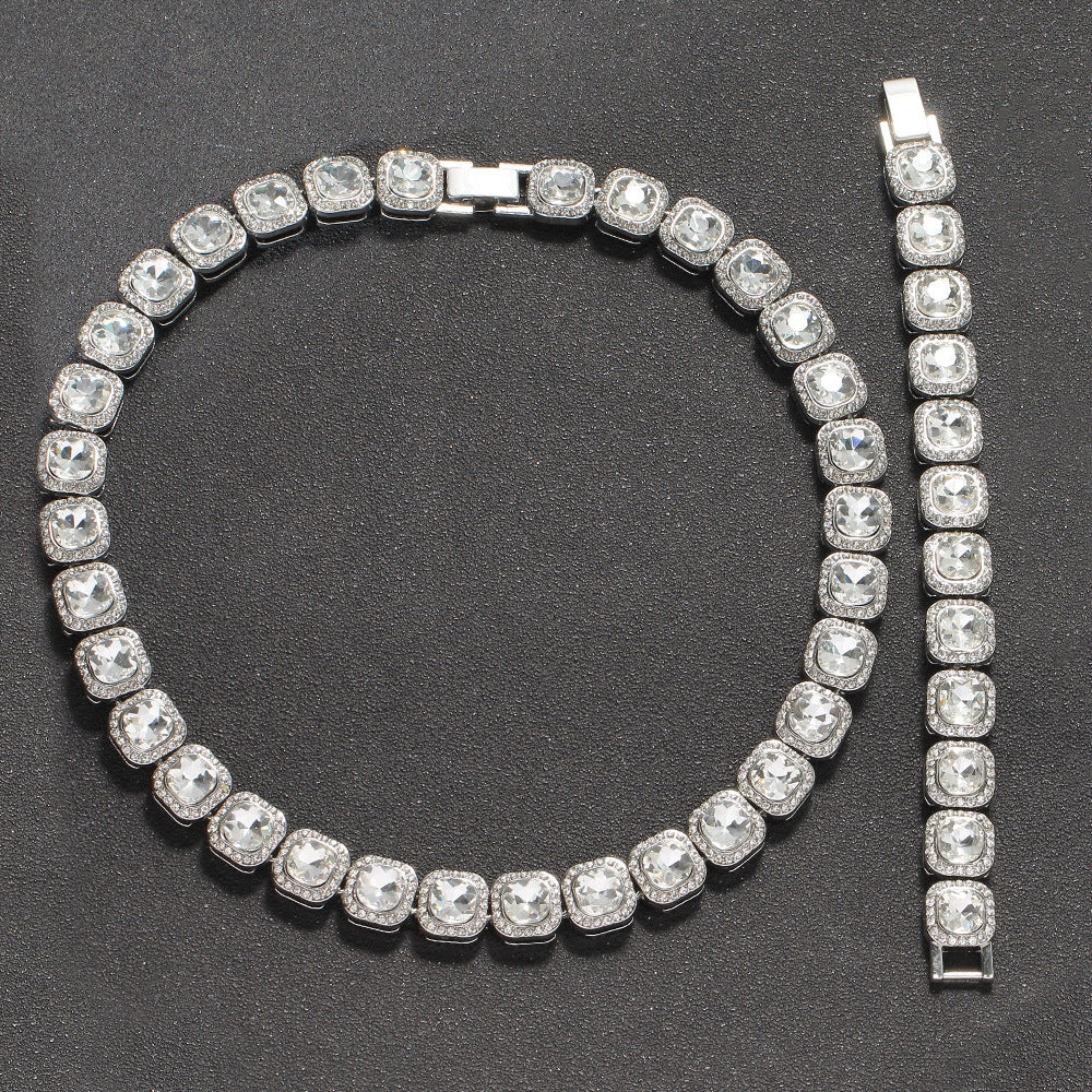 Silver Layered Real Gold Plated tennis Set Necklace Bracelet hip hop icedout #210
