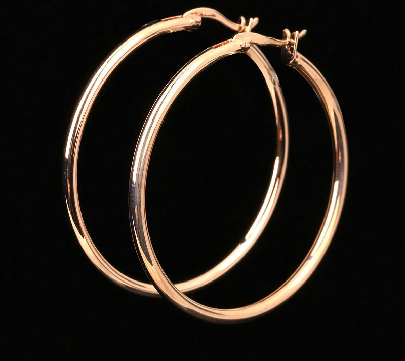 18k Layered real gold filled Round hoop earrings rose gold #9